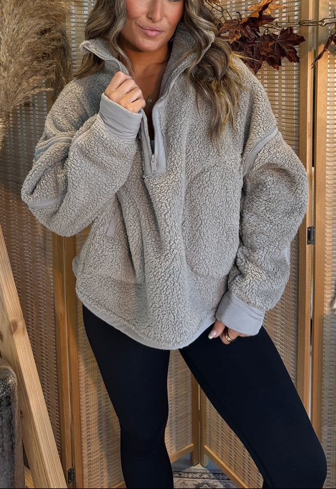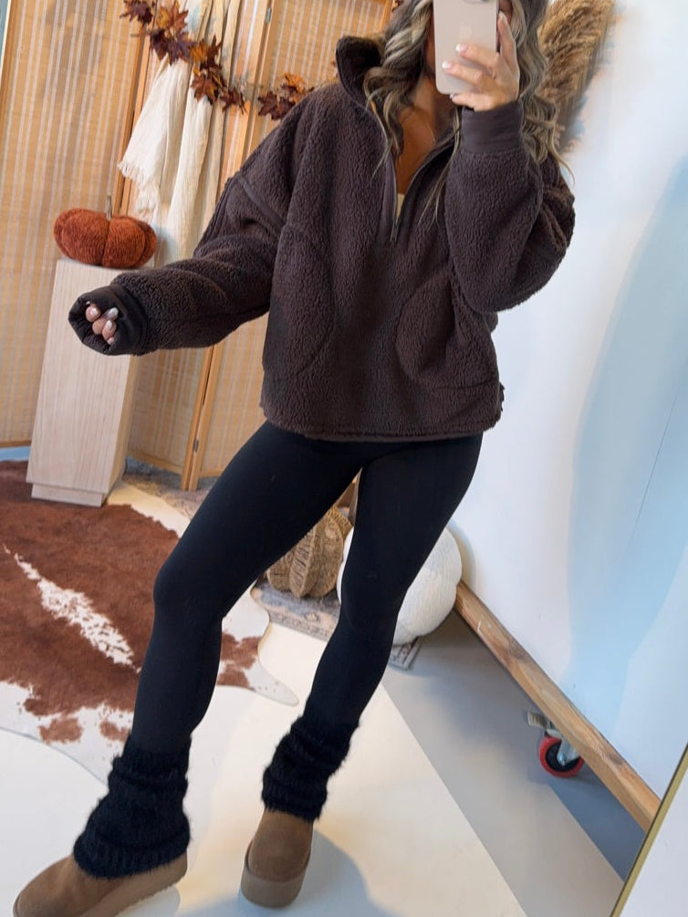 Sherpa mock neck quarter zip jacket
