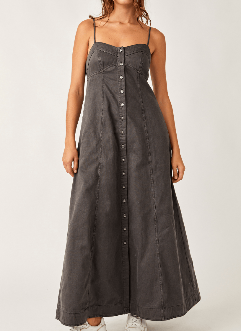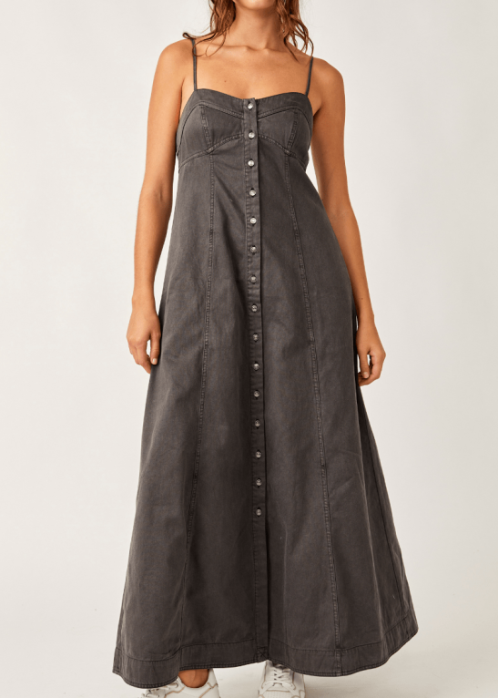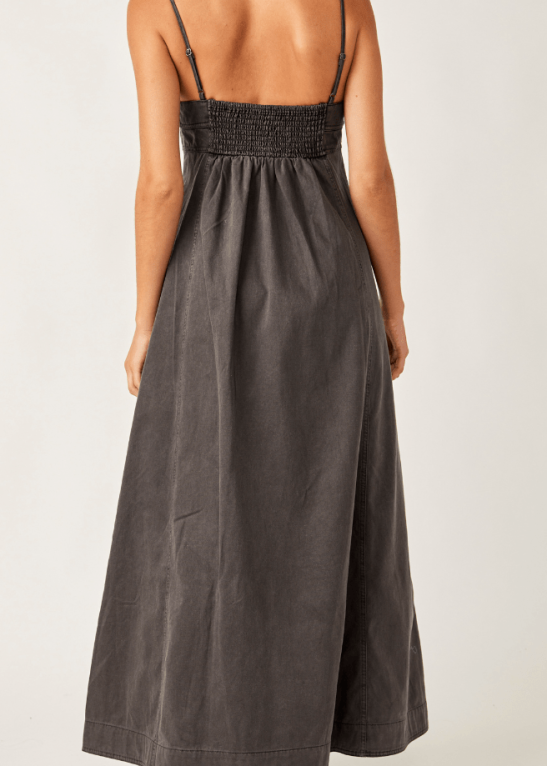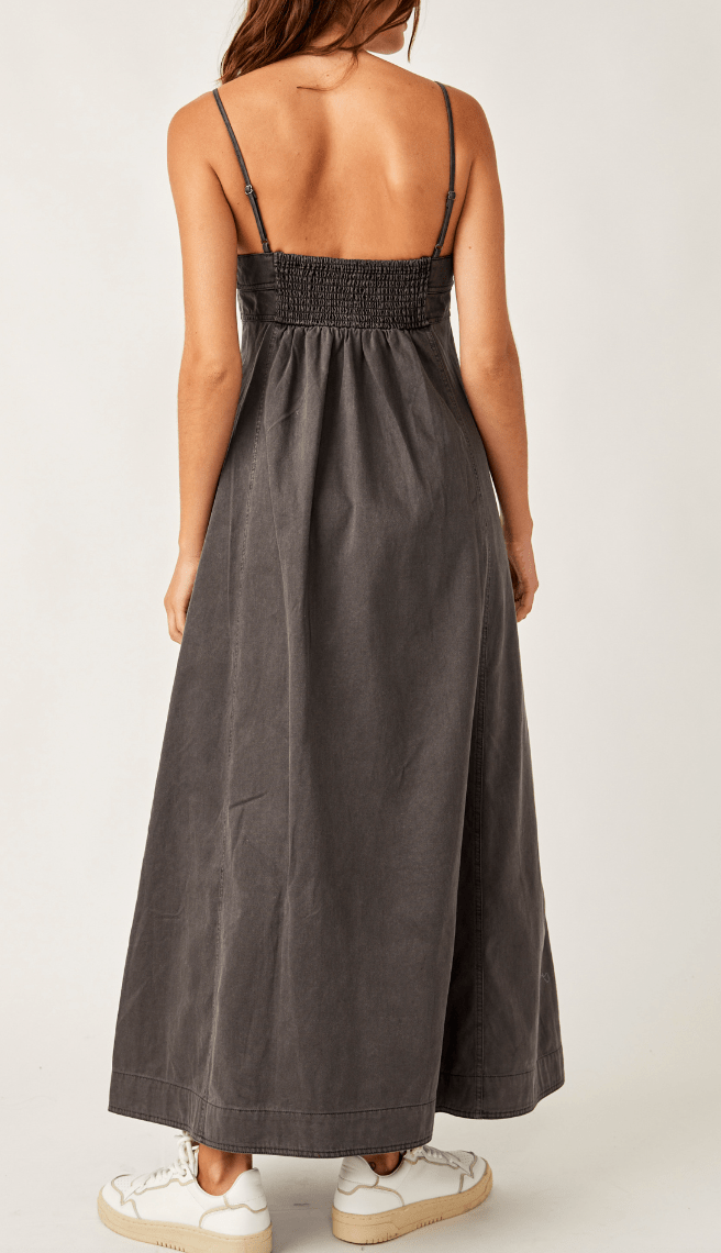 Fall for the A-line silhouette of this crisp poplin maxi designed with slender adjustable straps and shaping back smocking.