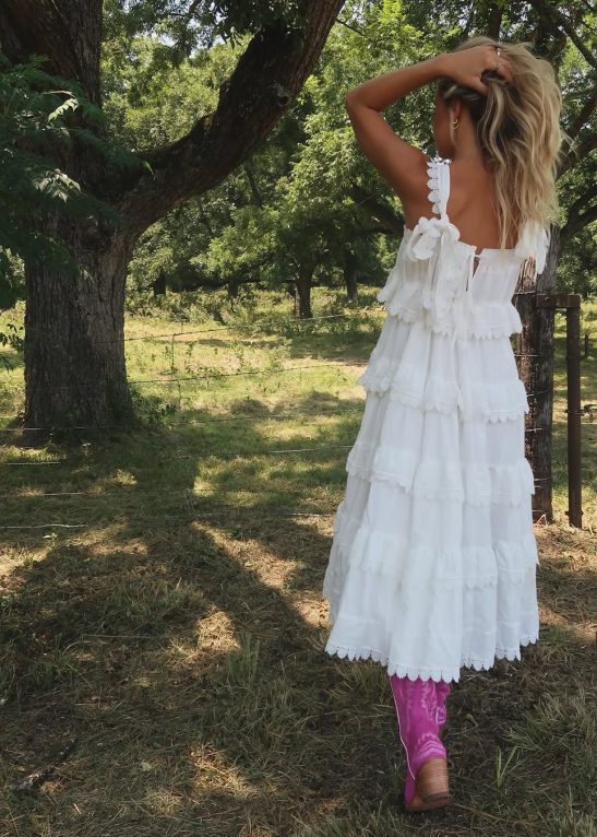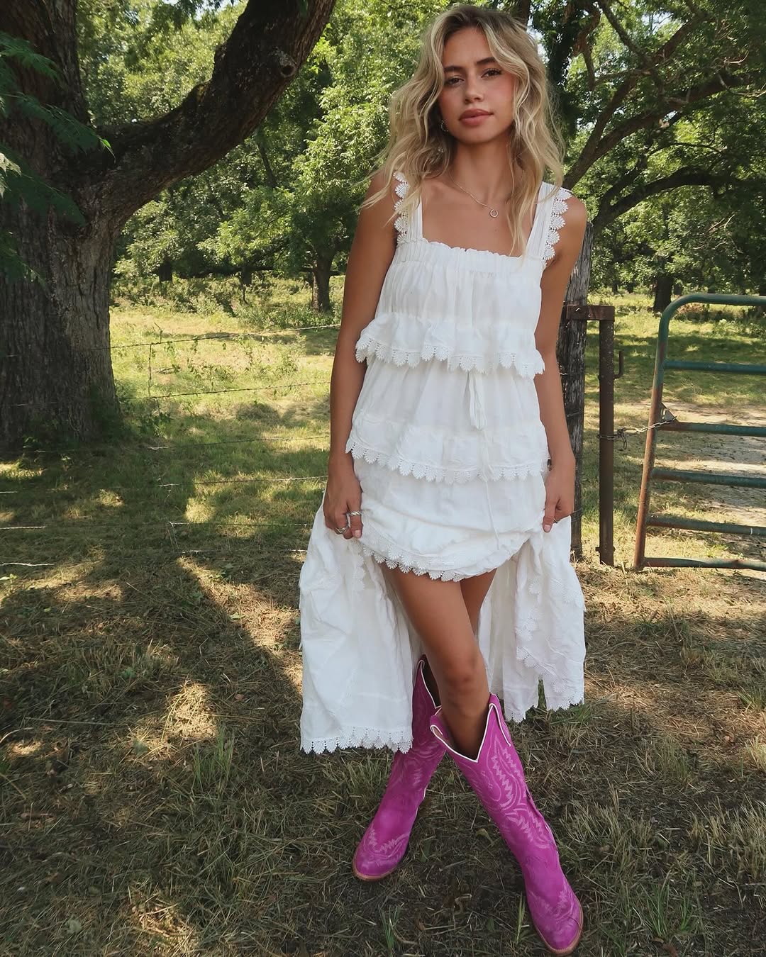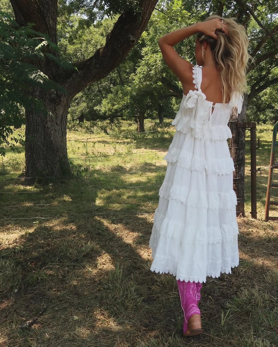 Layered Tiered Skirt: Creates a flowing, ethereal silhouette.